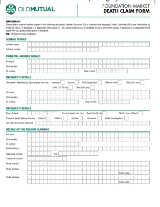 - Death Benefit Application Form completed by dependents and beneficiaries